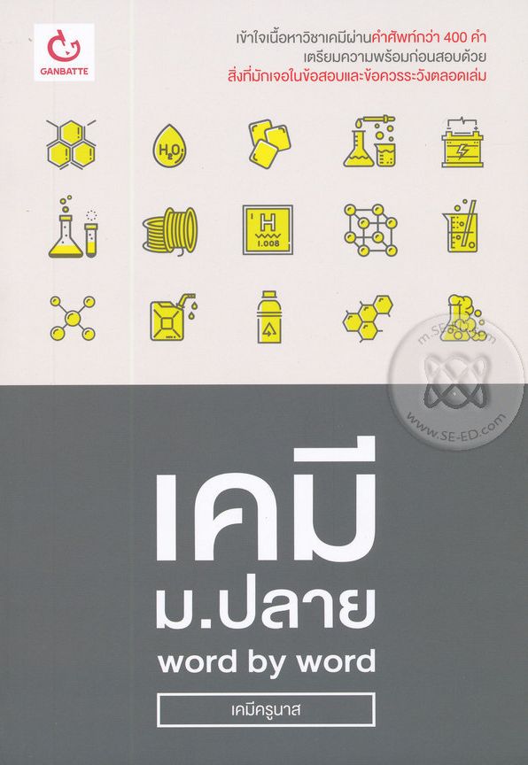 เนื้อหาย่อ : "เคมี ม.ปลาย Word by Word" เล่มนี้ ได้รวบรวมเนื้อหาวิชาชีววิทยา ม.ปลาย ไว้โดยละเอียดผ่านคำศัพท์กว่า 400 คำ ให้ความหมายแบบอ่านเข้าใจง่าย เปิดหาง่ายด้วย Index ท้ายเล่ม แบ่งหมวดคำต่าง ๆ ตามความถึ่ในการพบในข้อสอบ ทำให้แบ่งเวลาในการอ่านได้ง่ายขึ้น หากมีเวลาน้อยก็กวาดสายตาอ่านเฉพาะคำสำคัญได้เลย ภาพประกอบสี่สี พร้อมคำอธิบายอย่างละเอียด บอกสิ่งที่มักเจอในข้อสอบ และข้อควรระวังหลาย ๆ จุด เตรียมพร้อมไม่ให้โดนข้อสอบหลอก